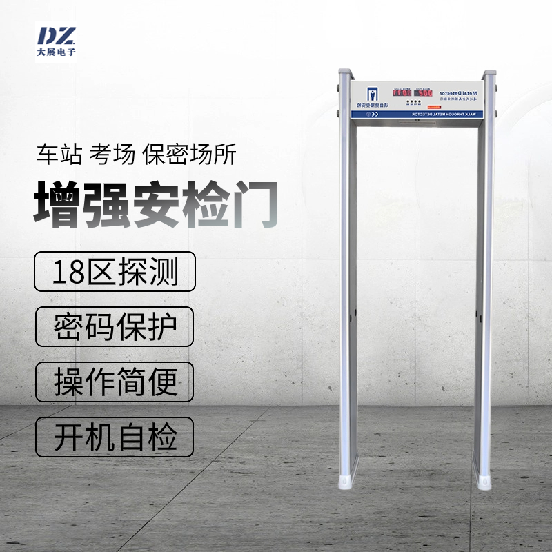 當(dāng)人體攜帶金屬物品通過時(shí)能產(chǎn)生報(bào)警的裝置,能準(zhǔn)確探測(cè)到人身上或手體包箱中攜帶的金屬物品或含有金屬的物品,如各種管制刀具、武器、金屬制品、電子產(chǎn)品及其他含有金屬的物品等,用來進(jìn)行安全檢查、防偷竊檢查的一種有效工具。