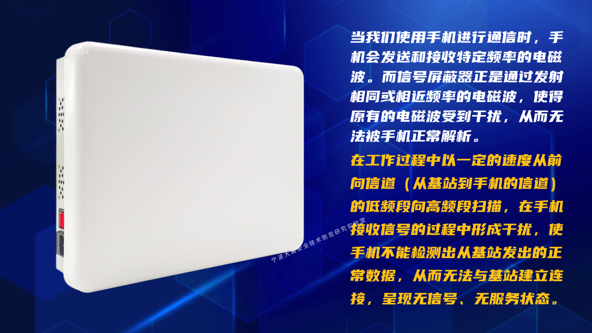 我們使用手機進行通信時,手機會發(fā)送和接收特定頻率的電磁波。而信號屏蔽器正是通過發(fā)射相同或相近頻率的電磁波,使得原有的電磁波受到干擾,從而無法被手機正常解析。