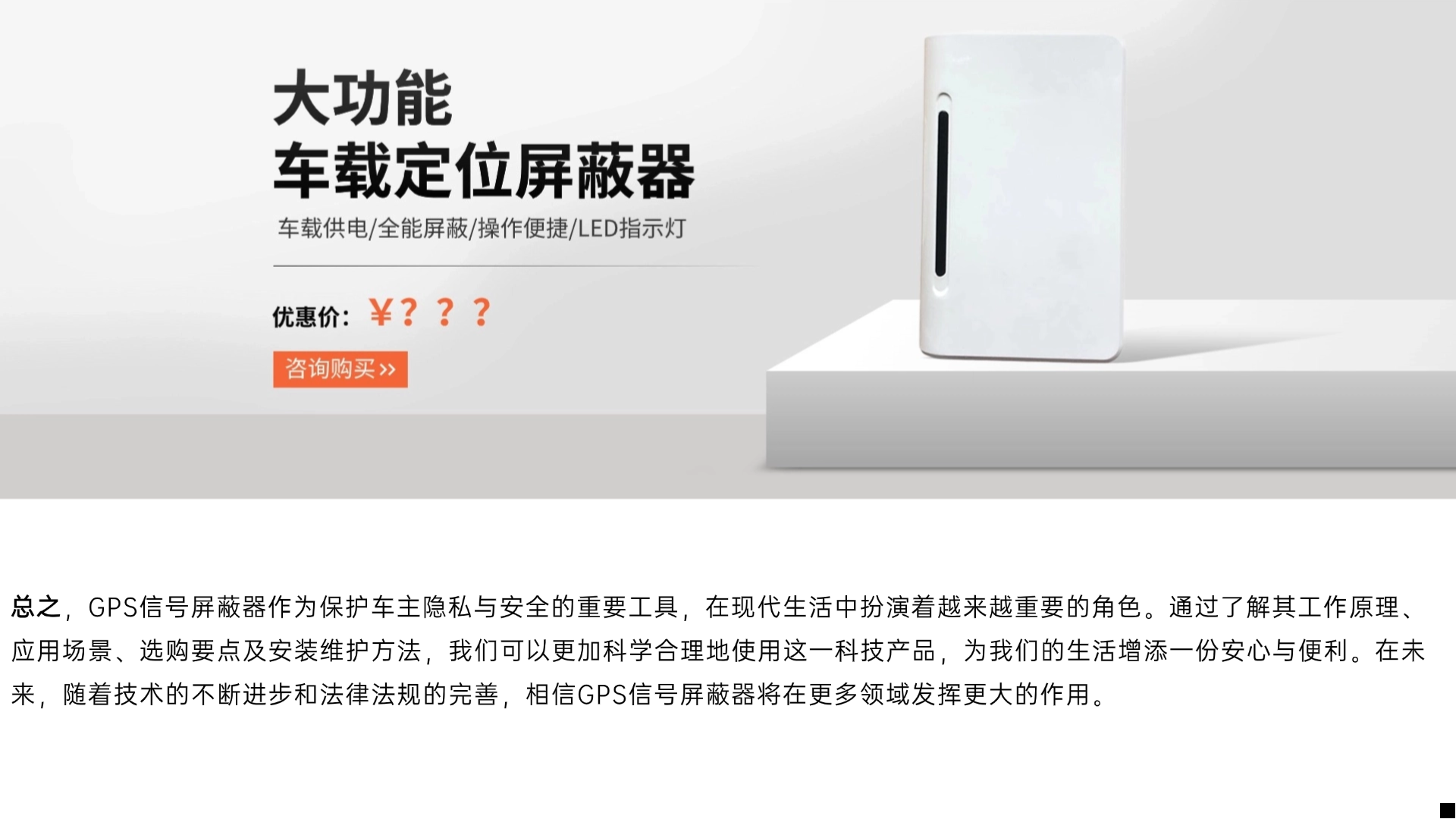 對于一些高價值車輛或運輸重要物資的車輛來說,車載 GPS 信號屏蔽器更是必不可少的安全裝備。它可以確保車輛在行駛過程中的位置信息不被泄露,防止不法分子策劃搶劫或盜竊等犯罪行為,為車輛和物資的安全提供有力保障。