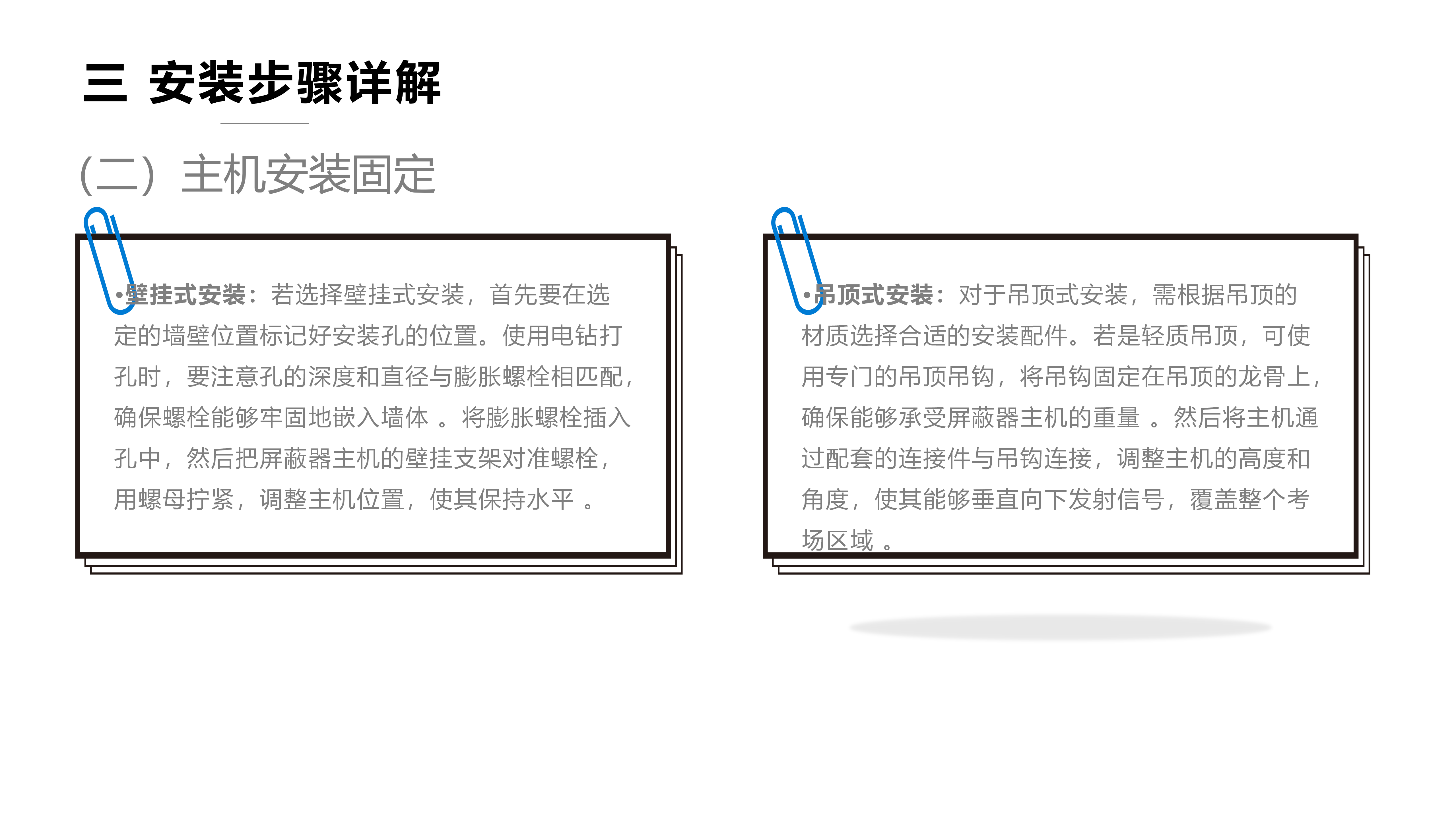 若不想壁掛,也可將屏蔽器放在講臺等較高位置。比如在學校教室,將屏蔽器平穩(wěn)放置在教室前面黑板下的講臺上,確保其放置穩(wěn)固,不會輕易掉落或被碰倒。不過要注意,桌面放置時,屏蔽器天線周邊 0.2 米內(nèi)不能有交流電源線路或其它音視頻線路,避免干擾 。