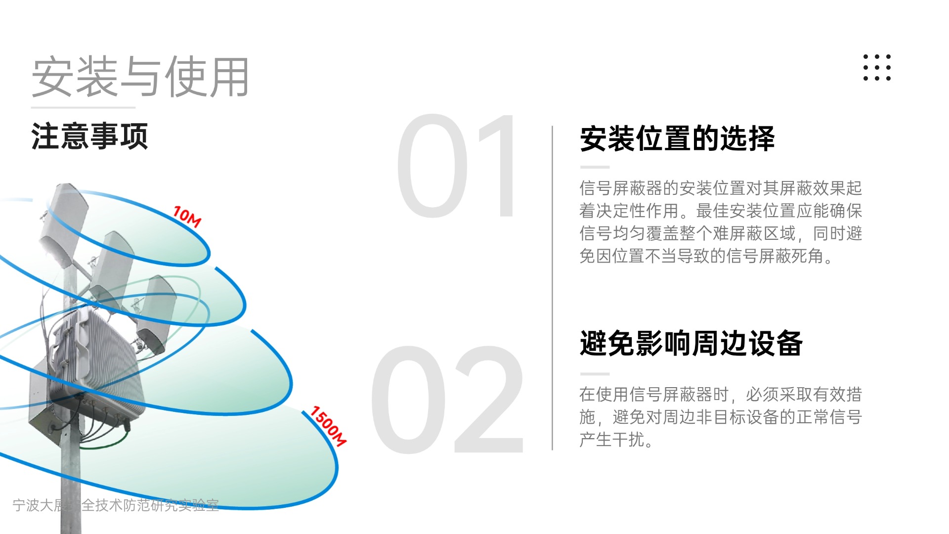 合理的安裝位置和方式能夠提高信號(hào)屏蔽器的屏蔽效果 。一般來(lái)說(shuō),屏蔽器應(yīng)安裝在較高的位置,如教室的天花板或墻壁上方,這樣可以使信號(hào)覆蓋范圍更廣,減少信號(hào)盲區(qū) 。同時(shí),要注意避免屏蔽器與其他電子設(shè)備放置過(guò)近,以免相互干擾 。在安裝過(guò)程中,還需要根據(jù)場(chǎng)所的實(shí)際情況調(diào)整屏蔽器的天線方向和角度,使其能夠最大限度地發(fā)揮屏蔽作用 。除了安裝,有效的管理措施也是必不可少的 。學(xué)校等教學(xué)場(chǎng)所應(yīng)指定專(zhuān)人負(fù)責(zé)信號(hào)屏蔽器的管理和維護(hù),定期對(duì)屏蔽器進(jìn)行檢查和測(cè)試,確保其正常運(yùn)行 。在使用前,要提前檢查屏蔽器的設(shè)置和工作狀態(tài),避免出現(xiàn)故障影響使用效果 。在使用后,要及時(shí)關(guān)閉屏蔽器,并妥善保管,防止設(shè)備損壞或丟失 。