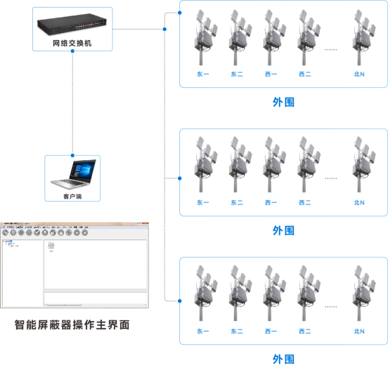 - 實(shí)時(shí)將工作狀態(tài)上報(bào)至智能屏蔽管理系統(tǒng),用戶(hù)對(duì)每一臺(tái)智能屏蔽器的工作情況。